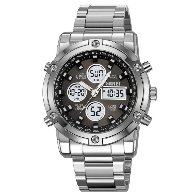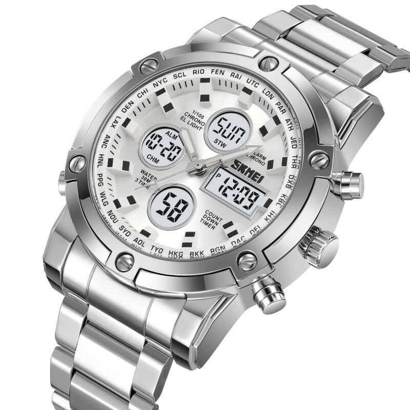 Skmei – 1816 – Dual Display luminous waterproofs 50+ timezone – Silver/White