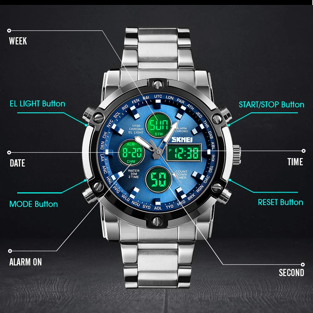 Skmei – 1389 – Dual Display Waterproof Watch – Silver/Blue