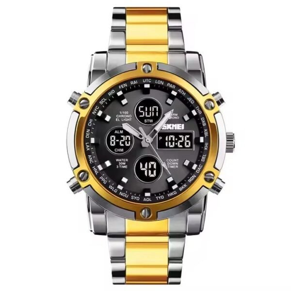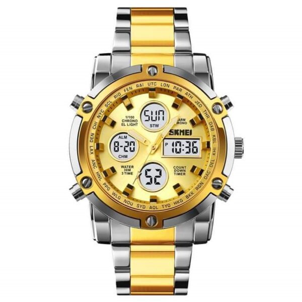 Skmei – 1389 – Dual Display Waterproof Watch – Silver/Gold-Silver