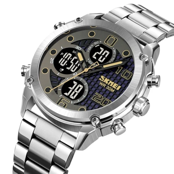 Skmei – 1389 – Dual Display Waterproof Watch – Silver/Gold-Silver