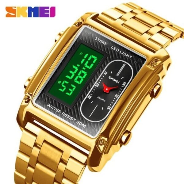 Skmei – 1389 – Dual Display Waterproof Watch – Silver/Gold-Silver