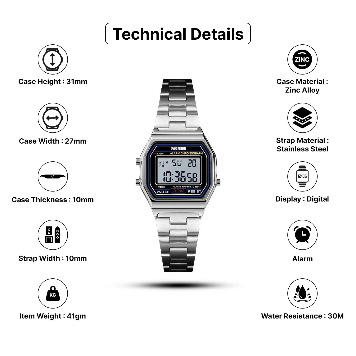 Skmei 1415 – Women Digital Stainless Steel Water Resistant – silver