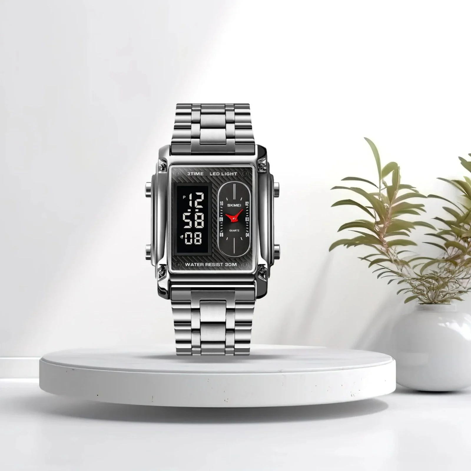 Skmei – 1389 – Dual Display Waterproof Watch – Silver/Black