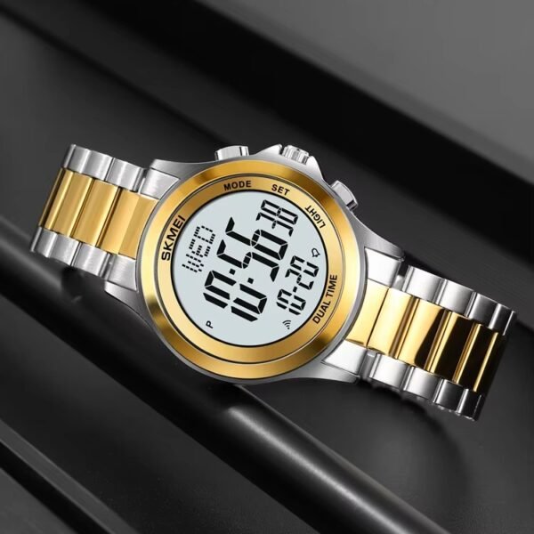 Skmei – 2271 – Digital Dual Time Men’s Stainless Steel Watch – silver gold