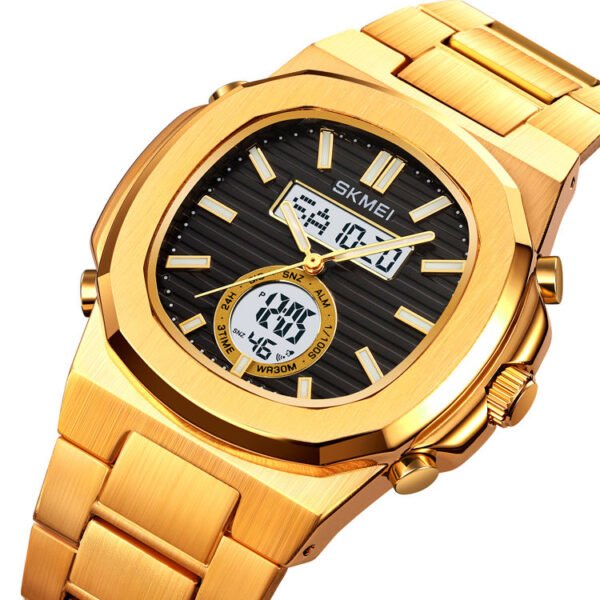 ⌚ Dual Display — Analog + Digital in One Elegant Gold Design