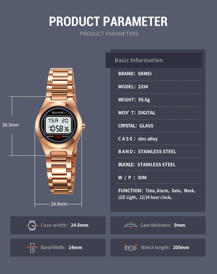 SKMEI – 2334 – Women Digital Stainless Steel Watch – rose gold