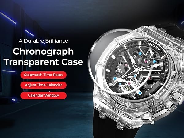 • Stylish Design: Bold skeleton dial with sporty red detailing.