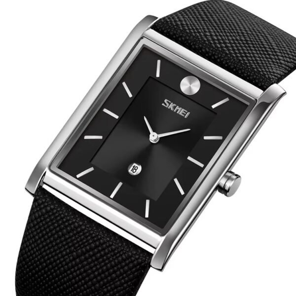 Skmei – 9256 – Genuine Leather Strap Japan Quartz – silver black